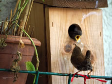 Na Weken un Weken, de ik dat Vagelhuus bi to beobachten weer, weer nu endlich sichtbore Nawuss vördag kamen. De Lütten hebbt natüürlich in eensento Hunger, schriegt avers nich na Foder, as ik dacht heff. Wenn Moder Foder bringt, stoppt se nich bloots de hungrigen Snavels an't Lock, sünnern krüppt ok na binnen. Dorwegen kann ik mi vörstelln, dat dor binnen noch mehr Lütte töövt. Nu kann ik mien Balkon eerstmal nich mehr sülven bruken, un dorna mutt ik wohrschienlich dat Huus opschruven un putzen. Dat is mi dat königliche Beleevnis weert. De Biller köönt Se per Klick