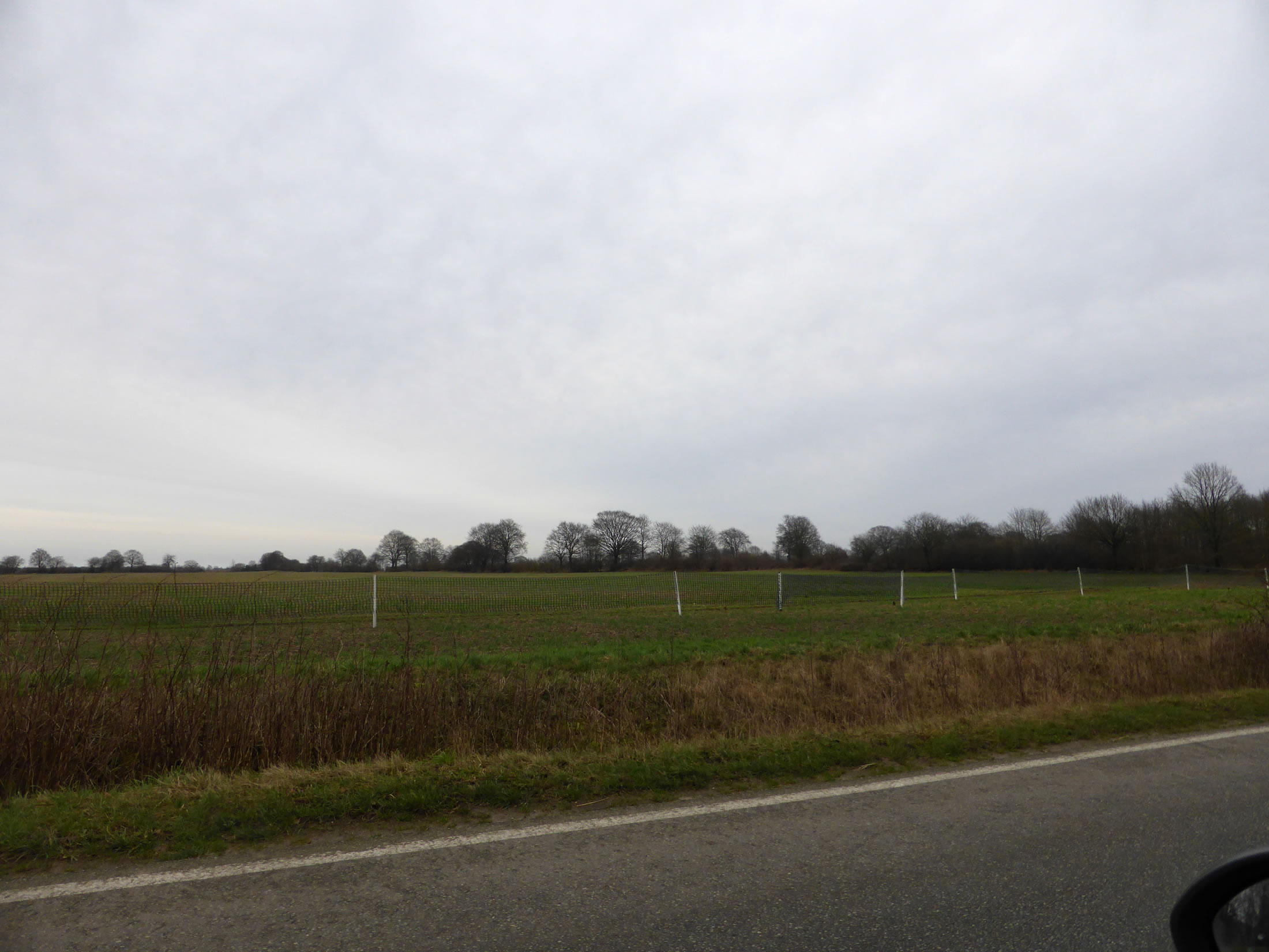 3.2.20 ....Dat mutt'n verklaarn Nicht an vele Steden kannst hüüt noch sowat sehn: En lichte Tuun, an Plastikpahlen locker in den Acker steken, nich mal dicht gegen wat is dat denn? Tja, leev Kinners, dat kennt ji nich mehr; dat is gegen Snee. Nee, nich dorför, dat dat nich sniet, sünnern wenn dat sniet, schall de Wind den Snee nich över de Straat puusten. Denn is de Straat nämlich gau dicht. Dat kunnst fröher veel beleven, wenn so'n Tuun fehlen dä. Dorüm geev dat düsse "Schneeverwehungszäune" överall, 'neem de Wind en frie Flach harr un gefährlich över de Straat puusten kunn. Dat ik hüüt noch een funnen heff, is meist en Wunner! Dat Bild köönt Se per Klick