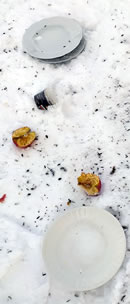 13.2.21 ....Nich mehr all Teller in't Schapp! Mien lütte Vagelbande op de Terrass mutt bannig freten, wieldat de Küll bi Nacht aasig veel Knööv kost. Utrekent nu sünd Meeschenknödel, Energieblöck un sogor de Appel hart fraren as Steen... Se wüllt avers ok drinken. Un dorto sleep ik ehr jeden Dag en flachen Teller luukwarm Water rut. Ja, beid: en Teller un Water. Mien Problem is nämli, dat de lütten Beester ok pütschert, un denn freert de Teller in Nullkommanix an'n Borrn fast. Neegsten Dag versöök ik em aftorieten, dat ik em wedder bruken kann nix. Na, un ehrdat ik mit'n Föhn kamen do usw., nehm ik denn even en niegen Teller. Fief Teller un 1 Schöttel backt nu al op mien Terrassenborrn, un dat warrt Tied, dat de harte Frost wat minner warrt. Ik heff nich mehr veel. Will ja ok mal Supp eten... Marlou Lessing