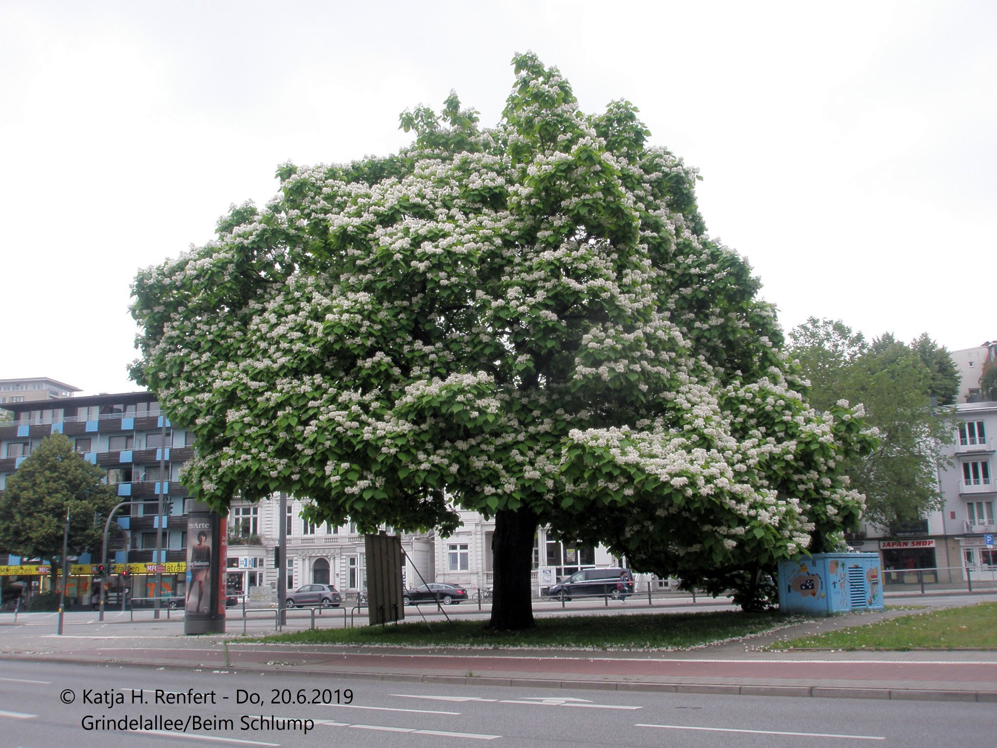 Hamborg, Schnackenburgallee, Stratenböschung na Süüd: De eersten Löwentehn blöht! Stückerwat Lü zückt ehr Handy un knipst. Noch is dat wat Besünners. Ach ja, in de Supermärkt is siet letzte Week de Oostersnoopkraam rut. Jaja, een Sösstel vun't Johr is bald rüm! 2020 gifft Gas! Marlou Lessing