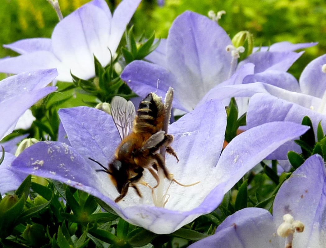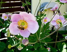 sik en Blööd ut un sett se sik Ok de Immen un Hummeln kaamt Nektar halen. De Anemone japonica is in den Augustmaand en richtig Freud för de Insekten un för mi. De annern Blööm hebbt ehr beste Tiet al achter sik. De Biller köönt Se per Klick