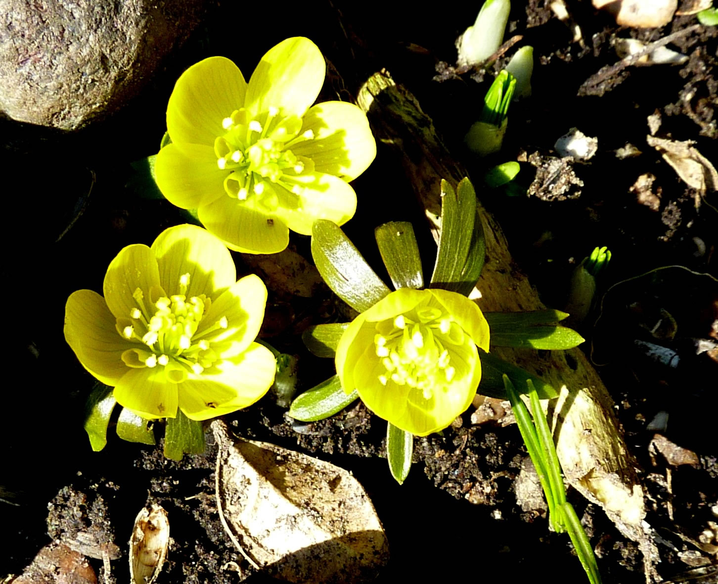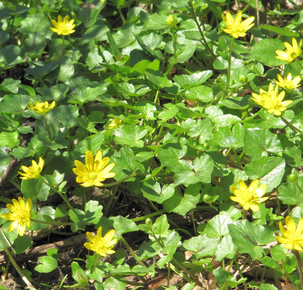 Nu blöht dat wedder, dat güllen-geel Scharbockskruut. Dit Johr is dat Kruut en beten wat laat togangen kamen. Man hüüt hebbt Enkeldeern Lene un ik dat funnen un glieks photographeert. De bodderblanken gelen Blödensteerns sünd richtig hübsch antokieken.