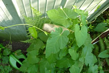 Gartengloxinie orrer ok Chinesische Trompetenbloom to." Leider heff ik denn unsen Söhn vun disse Anti-Hunnewupp-Bloom vertellt un he hett mi de mehrsten afsnackt. Ik mütt togeven, he hett noch mehr Besöök vun disse Gänge-wöhlen Deerten in sienen Goorn as wi. Tja, un nu mütt wi töven. Inplant heff ik miene Knollen.