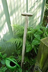 An dat Goornhuus lehnt steiht en Escher. Lang steiht he dor noch nich. Vör knapp veertein Daag wöör he noch bruukt. Mit de Schüffel halv in de Eer hebbt se em in de Eck stellt. Dor weer he ganz eenfach stahn bleven. Se hebbt em vergeten.