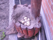 30.3.10 . .Giuseppe kriggt Familie "Ich krieg Familie!", grööt us Giuseppe verleden Week. Un he wies de Fotos op sin Handy: Eier! In de Boomwöttel-Vaas blangen sin Terrass. Giuseppe wahnt in Hamborg-Wilhelmsborg nehgbi't Water un besöcht min Computerkurs. De Eier stammt vun en sneewitte Aant. Elkeen Morgen leggt de Aant een Ei in dat Nest un geiht denn anner Geschäften na. De Eier liggt da so rüm, un dat maakt Giuseppe hibbelig; denn vör Johren harr al mal en Aant, en brune Aant, morgens Eier bi em leggt, da keem avers bi Dag en Rott un hett ehr freten. Na, düsse Rott hett Giuseppe avers as de Naam seggt utrott. Dorto hett he en Stück Speck twee Daag in de Süür vun sin Autobatterie laten un denn utleggt. De Rott en dösige Rott mutt dat west ween hett dat freten, un den tweten Dag leeg se dood op de Terrass. Nu, swöört Giuseppe vull Ingrimm, kümmt keen Rott mehr nehgbi sin Hus! Elkeenen Morgen bewunnert uns' Computerkurs dat niege Foto vun dat Nest, dat Giuseppe mitbringt un op sin Handy wiest, ehrdat wi us mit vigeliensche Computerthemen befaat. Acht Eier sünd nu tohoop. Villicht kümmt noch en negentes. Denn mutt ok bald dat Bröden losgahn. "Wenn se bit Oostern nich an't Bröden sitt, maal ik de Eier bunt an", seggt Giuseppe. (He meent dat avers nich so.) He höllt Foder paraat un höpt in veer Weken op 8 orr 9 lütte gele Fedderknüddel. Un 8 orr 9 nieschierige Computerschölers höpt op niege Fotos. Elkeenen Morgen. Fotos: Giuseppe di Salvo. De Biller
