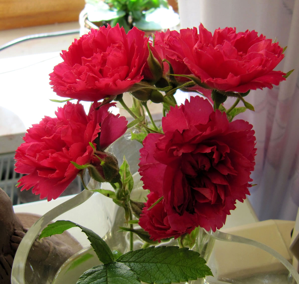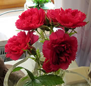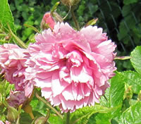 Uns beiden Rosenbüsch wasst al över 25 Johr bi uns, un se wiest uns Johr för Johr ehre aparten Blöden, de utseht, as weern se Nelken. De Biller köönt Se per Klick
