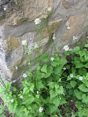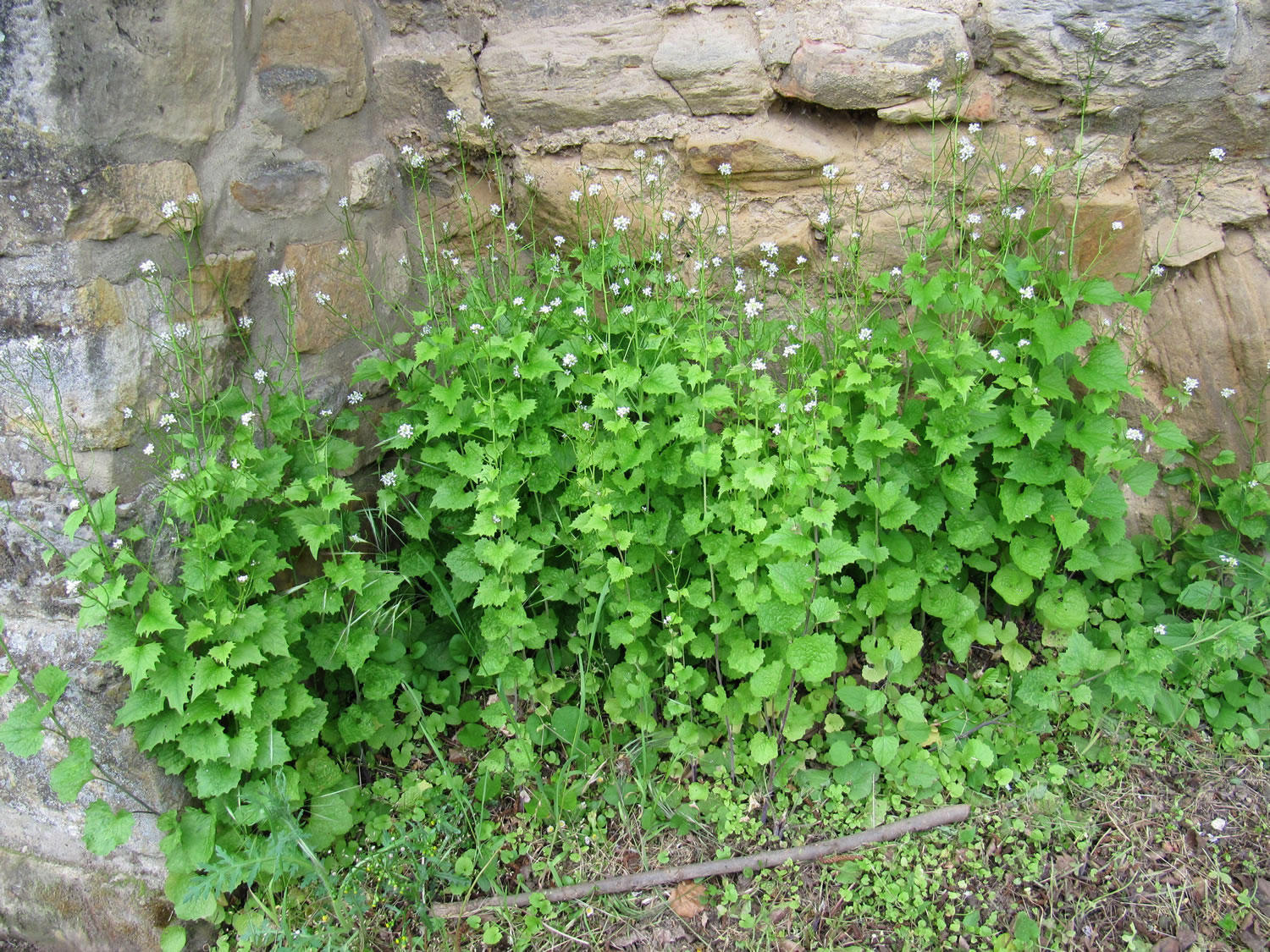 Tau'n Anhören: Hier klicken Knoblauchrauke wasst as "Unkruut" as Naver Franz jümmers seggt. Un disse Plant is överall in Europa to finnen. De jungen Bläder vun de Plant rüükt na Knuuflook un smeckt ok so un dorher hett de Plant denn wohl ehren Namen. Dat gifft noch anner Namen för se, as Knoblauchskruut, Lauchkruut, Knoblauchhederich. Fröher is Knoblauchrauke geern as Gewürz bruukt worrn. Later weern Gewürze nich mehr so düür, jeedeen kunn de betahlen, un dor is de Knoblauchrauke as Kökengewürz bilütten vergeten worrn. Hüüt entdeckt de modern Köök dit Kruut wedder nieg. Man bi 't Kaken verleert sik de peperig-scharp Knuuflook-Smack vun disse Plant, se mütt also frisch roh to de Spiesen geven warrn, as Bispill in Quark orrer Salatsoßen orrer anners wat. Nu in'n Mai un ok al in'n April kann een oft den Aurora-Falter üm de Knoblauchsrauke rüm flattern sehn. He is licht to kennen, disse Falter, an siene witten Flögel mit de orangen Flögelspitzen. Un worüm is he so geern bi den Knoblauchsrauke un jüst so geern bi dat Wiesenschaumkruut? De Rupen vun den Falter de futtert to geern de Früchte vun disse beiden Planten. In miene ollen Krüderböker heff ik nix över de Knoblauchrauke funnen. As Heilplant is se wohl nich bruukt worrn. Ja, un disse Plant steiht nu groot un kräftig bi Erika in'n
