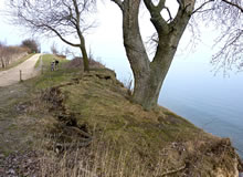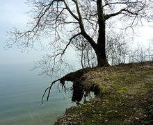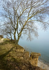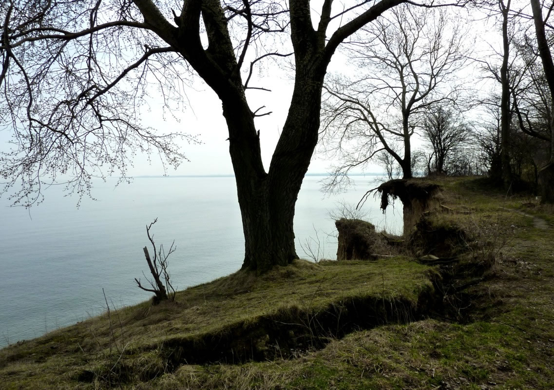 He wüss genau, dat he de längst Tiet hier stahn harr. Ok wenn he versöch, sien Wöttelwark noch deper in de Eer to drieven. Al in't verleden Johr harr he keen richtigen Hollfast mehr funnen. De Eer ünner em weer deelwies ganz eenfach wegsackt. De Boom, en Graupappel, weer an't Sinneren. As junge Plant harr he