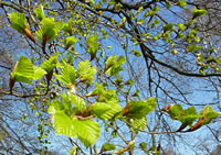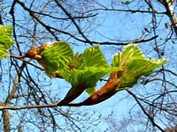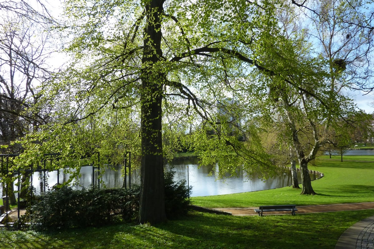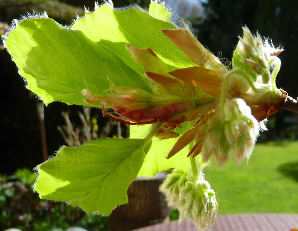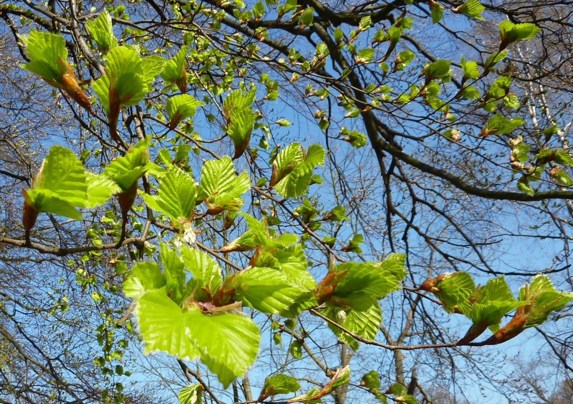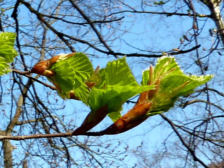 Kuum to faten, aver een Böök in unsen Park harr kort na de kolen Daag al an en poor Telgen de ersten Bläder. Dat eerst zart Maigröön! As Kinner hebbt wi üns ümmer en Telgen Maigröön an uns Fohrrad steken.