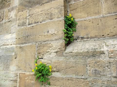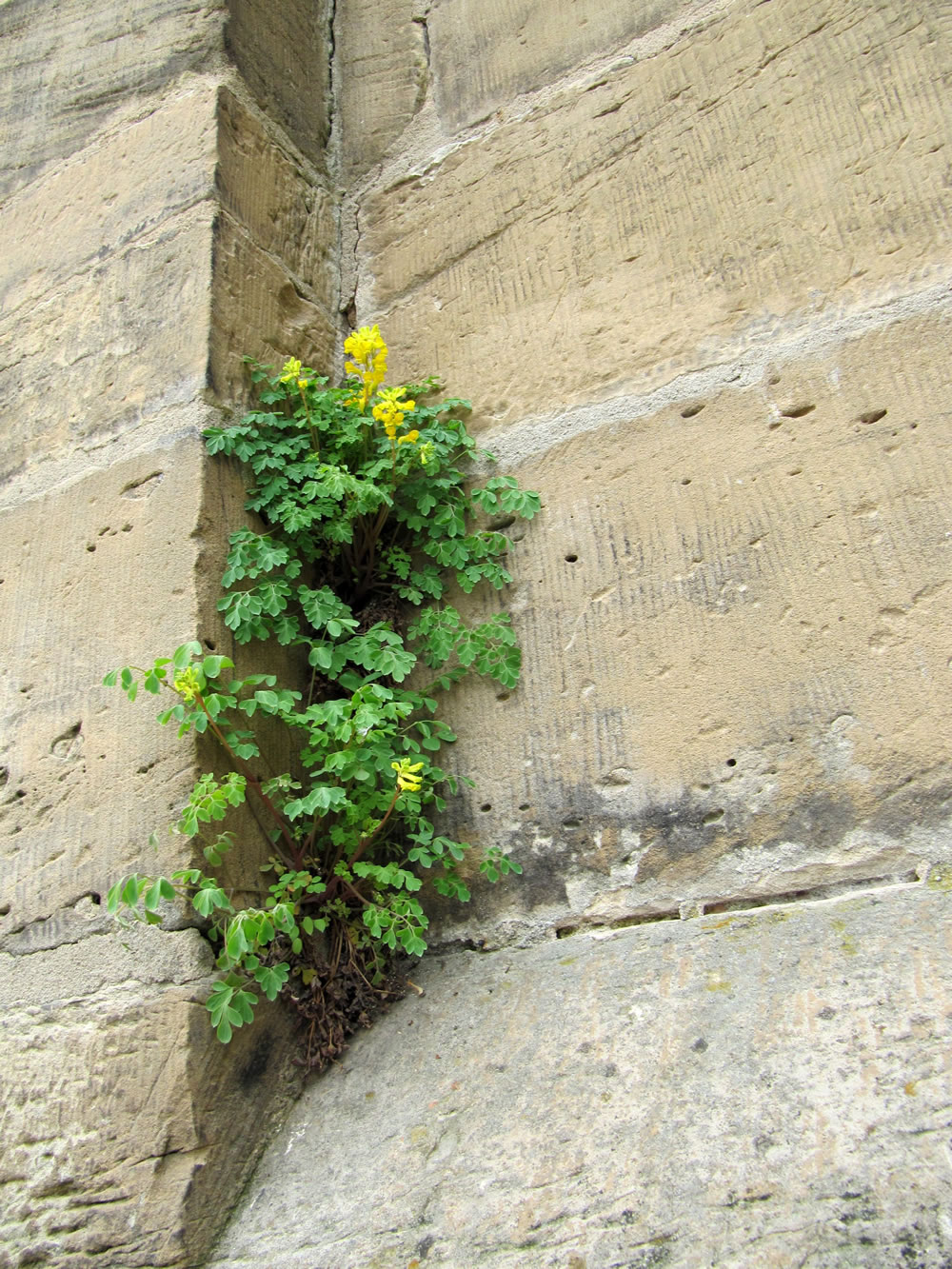 Mann ok dor in Brass kamen, wenn Straten, Weeg, Ik heff disse hübschen gelen Blomen in Hildesheim an de Wand vun en heel ole romanisch Kirch funnen. Un dat süht würklich ganz, ganz hübsch ut. Aver... De Biller köönt Se per Klick