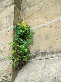 . .Muurritzen-Vegetation ![]() Ik heff disse hübschen gelen Blomen as Mauerritzenvegetation in Hildesheim an de Wand vun en heel ole romanisch Kirch funnen. Un dat süht würklich ganz, ganz hübsch ut. Aver oh, wo kann mien leef Mann jümmers in Fohrt