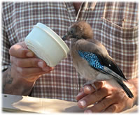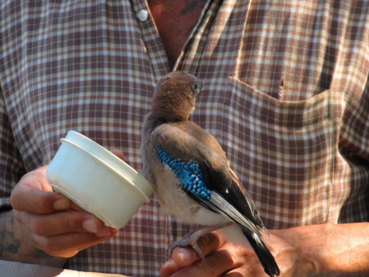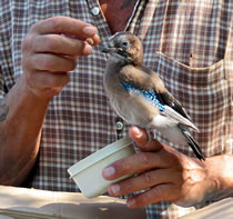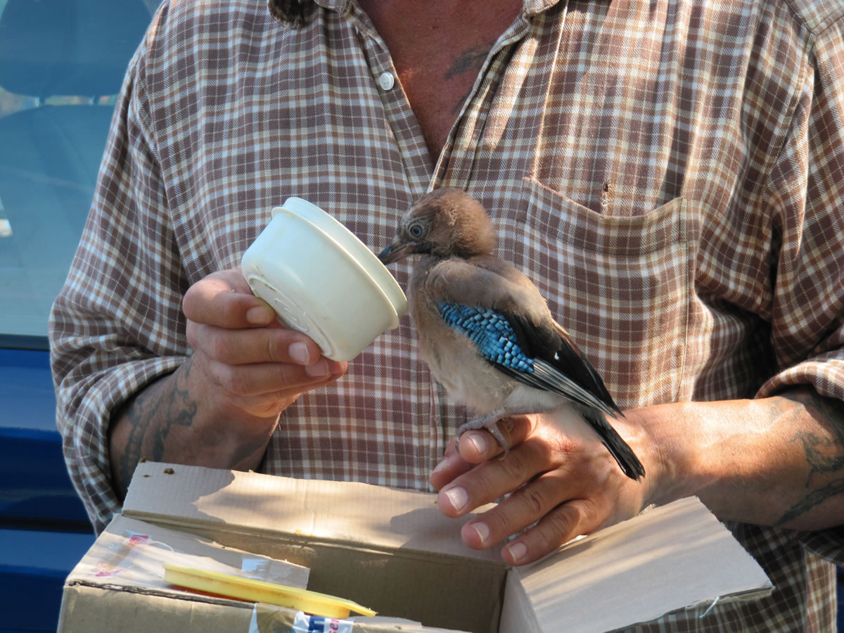Tau'n Anhören: Hier klicken Oh, wo deit uns dat jümmers leed, wenn wi lütt Vagelkinner findt, de ut 't Nest fullen sünd! Wi versöökt to helpen. Nich jümmers gelingt dat. Man kortens heff ik sehen, wo dat bi so 'n rutfullen Eichelhäher allerbest klappt hett. De Pleegvadder vun dat lütt Deert is een vun de Indianer up de Segeberger Frielichtbühn. He hett den Vagel funnen un geiht goot mit em üm. Ik weer dorbi, as mal wedder Foder-Tiet weer. Dat schient, as wenn de beiden de Vagel un de Minsch richtig goot mit 'nanner utkaamt. Ik mag den Eichelhäher geern lieden, ik mag sien Utsehen, siene lüchen blagen Feddern, ik mag sogoor sien heiser Gekrächz ik bün aver noch nie so dicht an em rankamen as ditmal. De Biller köönt Se per Klick