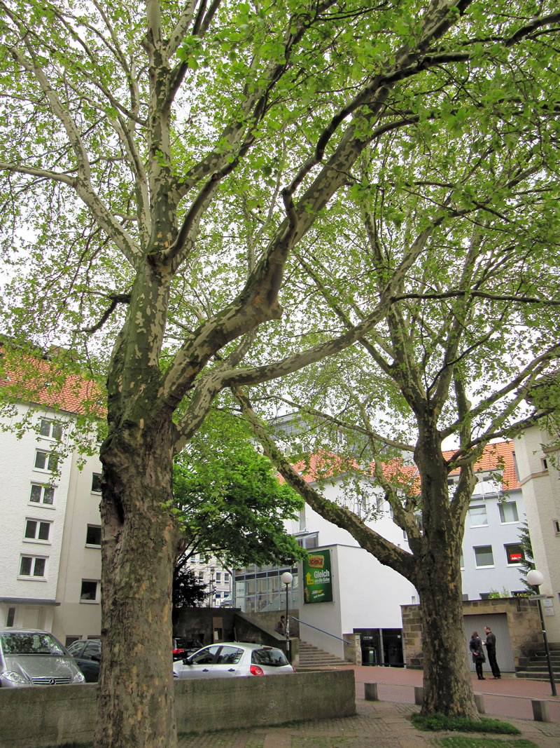 Dat gifft noch vele anner Stellen in de Bibel, wo de Platane nöömt warrt, ik aver harr bet dorhen nienich ene sehn. In de Twischentiet kenn ik dissen Boom goot, un ik kann em al vun wieden an sienen Stamm erkennen. He wasst recht veel bi uns as Stratenboom in Goorns un Parks. He is robust un kann dat Stadtleven good af. Nix an de Platane is giftig. De Früchte sünd kugelrund un hangt mehrst to tweet an'n Stengel. Se sünd rau un fix hart. Ik glööv, rinbieten kann man dor nich.