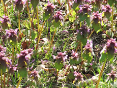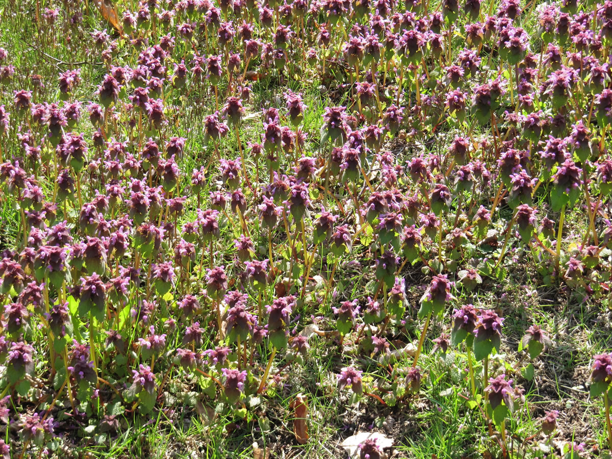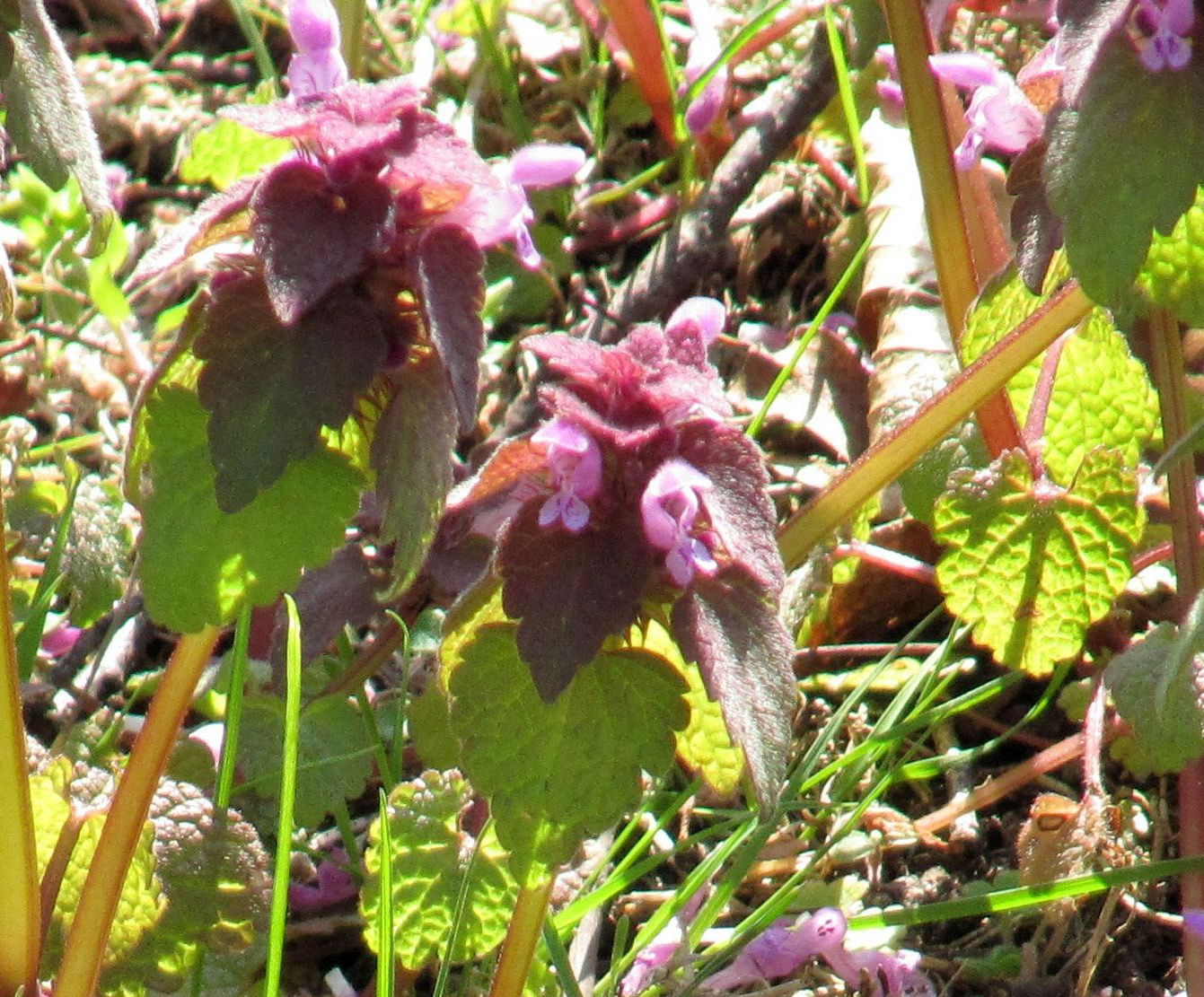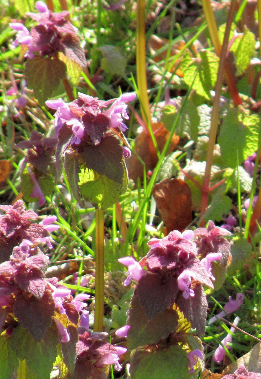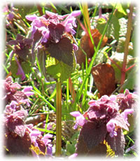 Konfirmation vun Enkel Thore. Un wat füll mi up? In den Pastorgoorn, up den Pastorrasen stünnen vele, vele lütte Planten mit purpur-farven Blöden. Dat sehg richtig hübsch ut. Ik keek wat nauer hen un stell fast: dat weer de Purpur-Taubnettel, de dor so munter an 't Wassen weer. Se warrt ok Rode Taubnettel nöömt, ehr latiensch Naam is Lamium purpureum (Familie Labiatae = Lippenblütler).