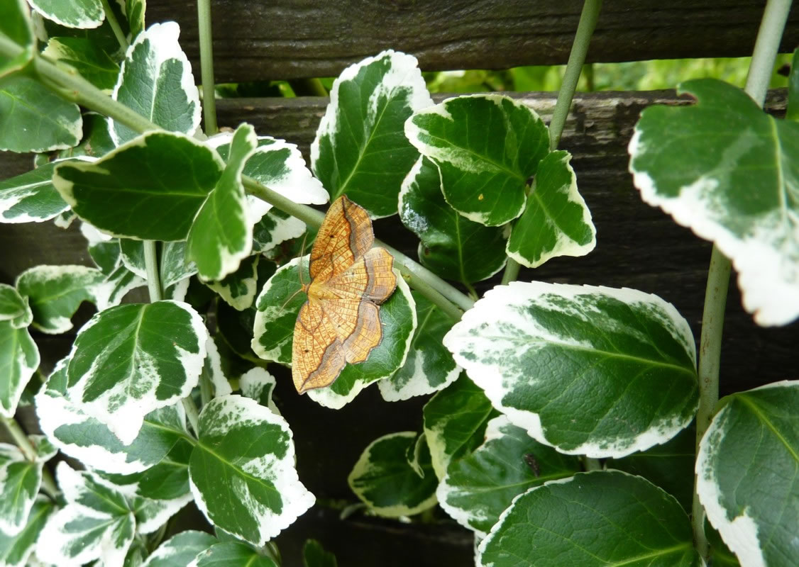 Gau haal ik mi en Glas un stülp dat över den Bottervagel. Afdeckt mit en Stück Papier heff ik em na buten bröcht. Dörch dat Glas keek he mi mit sien groten Ogen an. Twee grote smucke Föhler harr he an sien'n Kopp. An'n Enn vun sien Flünken harr he en annersfarvig afsett Band. Sehg meist as so'n Spitzenünnerrock ut. De Bottervagel weer wat Besünneres. He müss noch för en Bild ünner dat Glas blieven.
