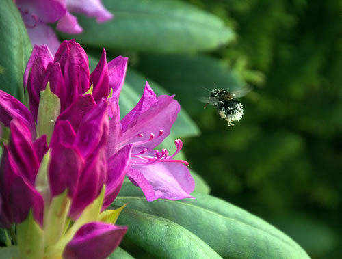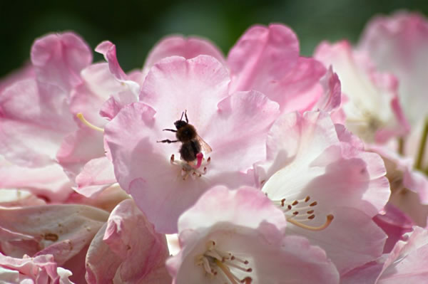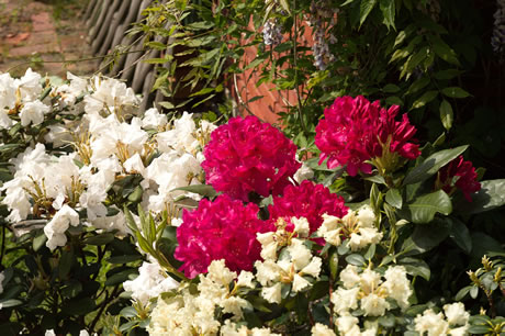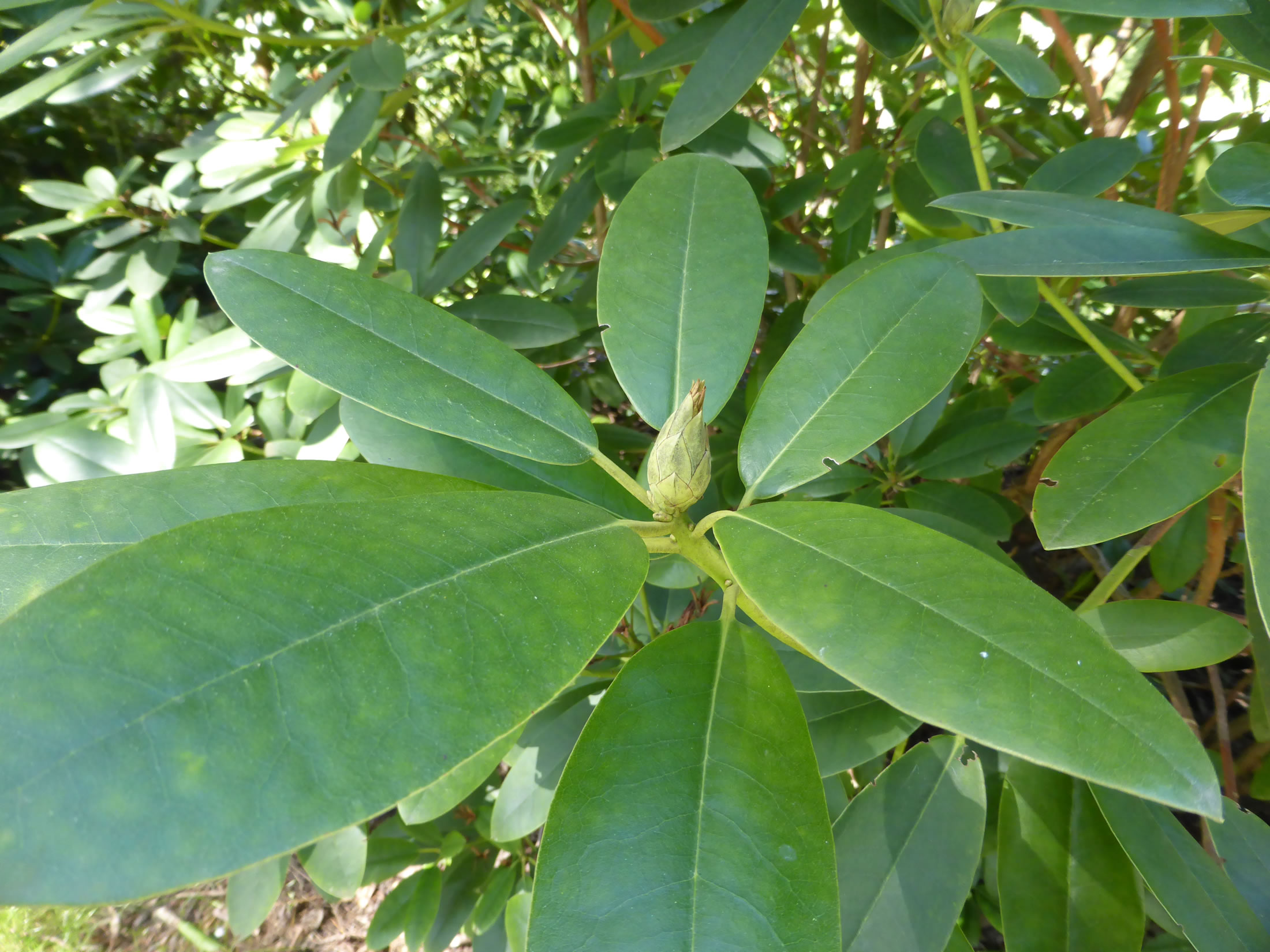 De Naam Rhododendron heet so ungefähr "Rosenboom" op Greeksch, aver nix dorvun stimmt nich Roos un nich Boom. De grote Rhododendron-Busch is en Verwandte vun dat lütte Heidekruut. Se bildt en grote Familie vun över 1000 natüürliche Rhododendren-Aarten; de, de künstlich as Goornplaten tücht woorn, tellt dor noch gor nich mit. Düsse natüürlichen Aarten gifft dat vun'n Regenwoold bet in de hogen Bargen vun't Himalaya, dat gifft ehr as lütte borrnkrupen Plant un wohraftig as Boom vun 10 m, un dat gifft ehr in alle Farven utnahmen Blaag. De Plantenaart hett sik heel fröh in de Eerdgeschichte entwickelt; in Fossilien al ut dat Tertiäär woorn Rhododendron-Reste funnen, also bet 60 Millioonen Johr trüch. In düt Eerdtiedöller weer dat teemlich warm. Natüürlich is de Evoluschoon siet dormalen wiedergahn un hett ok to de grote Rhododendron-Veelfalt föhrt. Asien, sünnerlich de Bargregionen dor, sünd de Heimat vun de Aarten, de wi in us Goorns kennt. Al de beropen Plantenforscher Carl vun Linné hett 1753 de Aart betekent un den Naam Rhododendron präägt, avers so recht utfunnen woorn düsse Planten eerst vör üm un bi 170 Johr, as britische Expeditionen in den Himalaya opstegen utdrücklich ok op de Söök na niege Planten för britische Parks orr Landweerschap. Se funnen etliche Aarten, de siet de Tied in Goorns to noch mehr dusende Formen tücht woorn. Un jümmers noch warrt op Planten-Expeditionen in den Himalaya niege Rhododendron-Aarten opfunnen! Typisch för all Rhododendren is dat prägnante Loof, de strahlenförmig üm den Telg stahn ovalen Bläder vun dunkelgröne Klöör. Vun düssen dunklen Achtergrunn heevt sik de Blöden in ehr Veelfalt sünnerlich smuck af. De Blöden vun'n Rhododendron sünd heel ünnerscheedlich, mal klockenföörmig, mal trumpetenföörmig, mal röhrenförmig orr rund as'n Eierschell. In de Goorns leevt wi de Rhododendren sünnerlich ok, wieldat se wenig Pleeg verlangt un ok mit suern Borrn allerbest klaarkaamt dor föhlt se sik wohl. Avers ok för uns flegen Personaal, de Insekten, is de Rhododendron en willkamen Foderquell. Sünnerlich de Hummeln köönt dor nich de Föhlers vun laten. Anners as bi de Rosen, 'neem de Blödenkelche bi mennig Tüchtungen ganz untogänglich för Insekten sünd, hett de Rhododendron apen Blödenkelche un höllt de lütten Deerten dat Foder, Nektar un Pollen, willig hen. Hummeln mit ehrn längeren Rüssel kaamt ok bi röhren- orr trumpetenförmige Blöden an de depen Blödenkelche beter ran as de Immen. Acht Se dorop, dat Se keen slaten Rosenaarten plant! För de Insekten is dat en anduern Enttäuschung. De mehrsten Rhododendren-Aarten blöht in'n Mai un Juni, man dat gifft ok welk, de al in'n Februar anfangt, un welk, de veel later, sogor in'n Oktober noch blöht. Mit de Hülp vun düsse ünnerscheedlichen Rhododendren köönt Se de Hummeln dat ganze Johr dörch good versorgen, ok wenn anner Planten un Stauden jüst nix levert! En Rhododendron to planten is de Harvst de beste Tied; dennso köönt Se ja al mal för düssen Harvst wat planen. in unvordenklich tieden un dor en schöönheit minschen kemen man to egen 20.4.2020