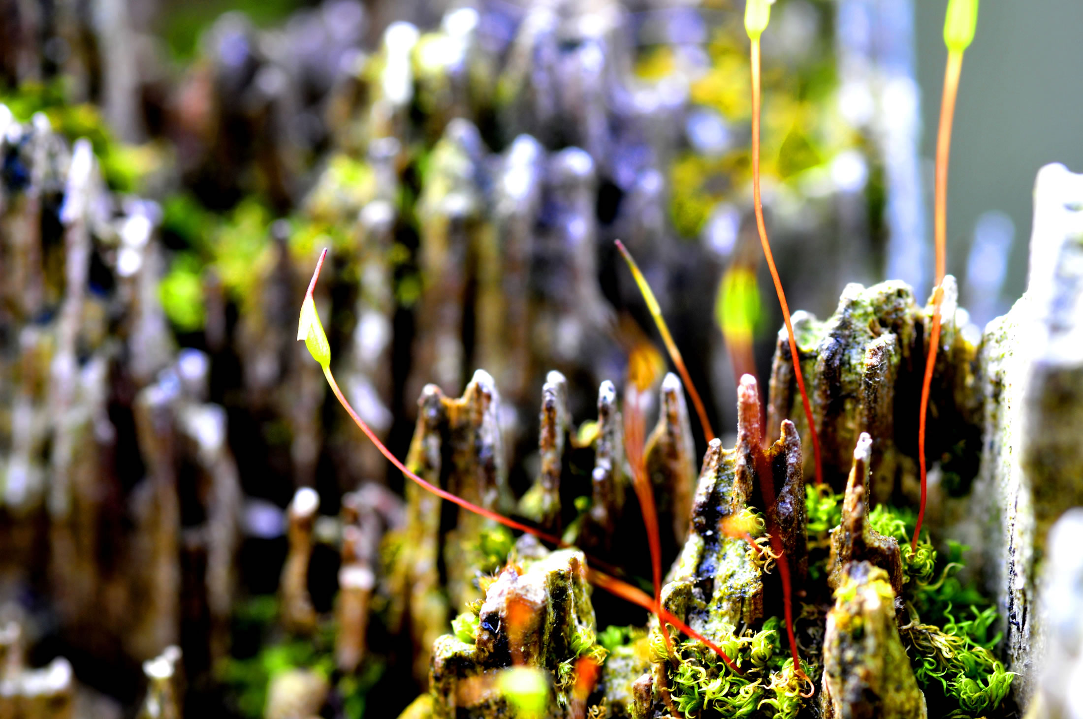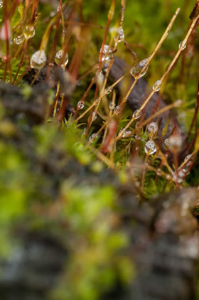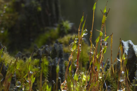 Sodennig leevt ok talllose Lüttleevwesen in düssen fuchtigen Levensruum in 1 m² Moospolster leevt ca. 60.000 Mini-Beester as Rööddeerten, Boordeerten orr Milben. Denn kannst di överleggen, wat so'n grote moosige Wooldborrn för'n Levensruum is! Un all düsse Deerten sünd wichtig för de Nohrenskeed un den Stoffwessel vun uns Ökosysteme. Moose seggt uns ok as so nöömte "Wieser-Planten", wat sik in en Ökosystem veränndern deit un wat dor nich stimmt. Bestimmte Moose wiest op bestimmte Ümweltbedingen hen. So robust se gegen Dröögde un Hitten sünd, so fienföhlig reageert se nämli op besünnere Nohrenstoffe un ok Schadstoffe in Boden, Lucht un Water. Denn Moose spiekert dat Water nich bloots, se filtert dat ok. Se filtert allens, sünnerlich ok Luft. Se köönt ok Schadstoffe, Fienstuff un sogor Swoormetalle ut de Luft filtern dorwegen warrt opletzt sogor Schallschutzwänn langs grote Straten un Autobahnen mit Moose polstert. Dat harrn se sik nich drömen laten, de lütten Planten! Wi all weet: Moos hett keen richtige Blöden. Dat warrt also nich vun Insekten bestufft. Över dat, wat Moos to sien Foortplanten deit, snackt wi hier nu nich dat is reinweg aventüürsch is dat. Sühst wohl: De unschienboorste Plant kann gewaltige Geheimnissen bargen! Ünnerschätz nienich en Plant. Se sünd uns alltohoop övermann. lütte Fotos: Günther H. Kloppert