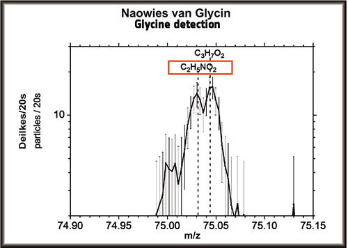 In dat Kollektor-Aerogel un in Folienproben van dei Stardust-Mission nao dat Vörbifleigen an den Komet Wild-2 fünnt man dei einfachste Oort van Aminosüren, dat Glycin, tausaome mit dei Stamm-Moleküle Methylamin un Ethylamin. Et geef Kontaminationsprobleme bi dei Proben, so kunn man ein kometoret Herkaomen blots ut dei 13C-Isotopen-Signatur van Kohlenstoff (C) affgeleiten. Ein Vörkaomen van flüchtiget Glycin, van Methylamin un Ethylamin in'n Koma von 67P/Churyumov-Gerasimenko wörd dör dat Rosina-Massenspektrometer mäten. Dit giff dei Stardust-Resultaote recht. Tausaome mit den Naowies van Phosphor un van väle annere orgaonischke Moleküle wiest dit Resultaot, dat dei Kometen vellicht eine wichtige Rulle bi dat Entstaohn van dat Läben up dei Eern spälden.