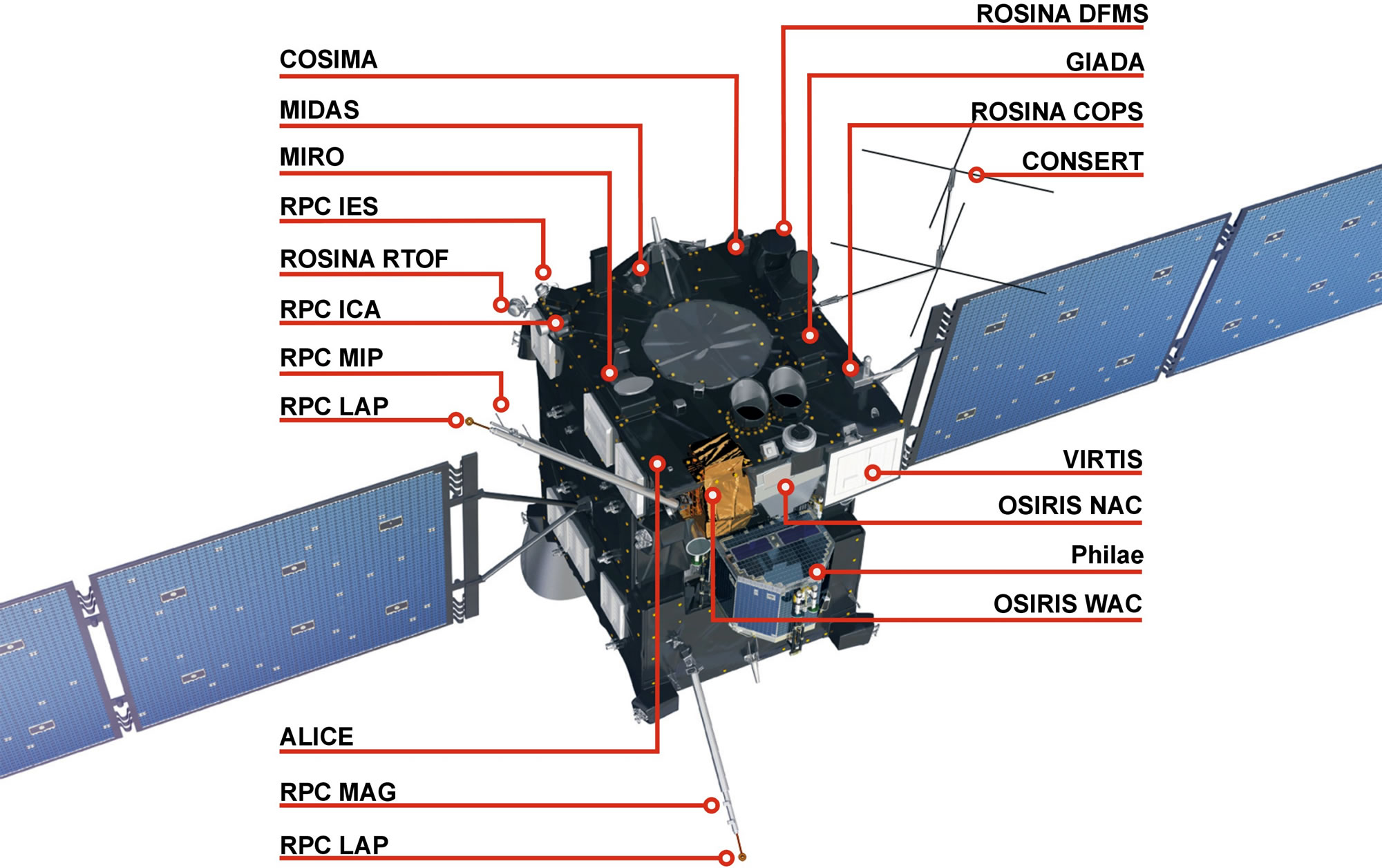 Dortau giff et an Bord van Rosetta ölf Instrumente: