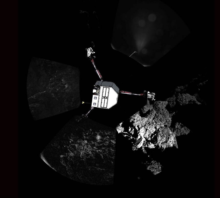 Mit dei Landestäe Agilkia was et nu vörbi. Äöwer 500 Millionen Kilometer is dei Affstand van dei Eern un dei Apparaot steiht nu up eine Stä, dei man noch nich kennt. Rund üm dei Uhr befaotde sick dei Manschkup in dat Lander Control Center mit dei ankaomen Daoten. In dei Nacht was denn klor hei hätt dei sünnerlicken Landesprünge aohne grooten Schaoden äöwerstaohn un hei warket nao sienen Arbeitsplaon. Forts passde dei Kontrollruum-Manschkup dei Kommandos för Philae an dei neie Laoge an. Dit eierste Panoraomabild van den Kometbodden (Bild rechterhand) mök dat CIVA-Kamerasystem un et wiest eine 360 Graod-Ansicht van dei Landestä. Dei Landbeine süht man up wecke Biller.