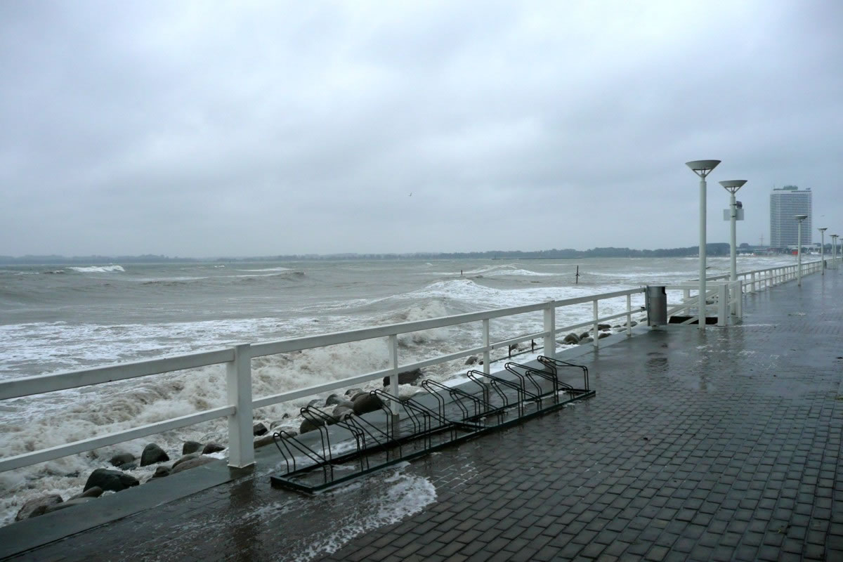 De Stor Dat müssen wi uns ankieken. Warm antrocken güngen wi an de Küst. An en Spazeergang up de Promenaad weer nich to dinken. Hoge Wellen slögen över de Kant. Wi müssen uppassen, dat wi nich natt wöörn. Dorto dreev de Storm Sneewulken vör sik her. Un dat sull nu uns Oosterweder sein! Aver gegen Avend legg sik de Storm. In de Nacht weer he denn ganz inslapen. An Oostersünndag weck uns de Sünn. Se strahl vun'n blitzblanken Heven. Nu kunnen wi doch noch unsen Oosterspazeergang up de Promenaad maken.