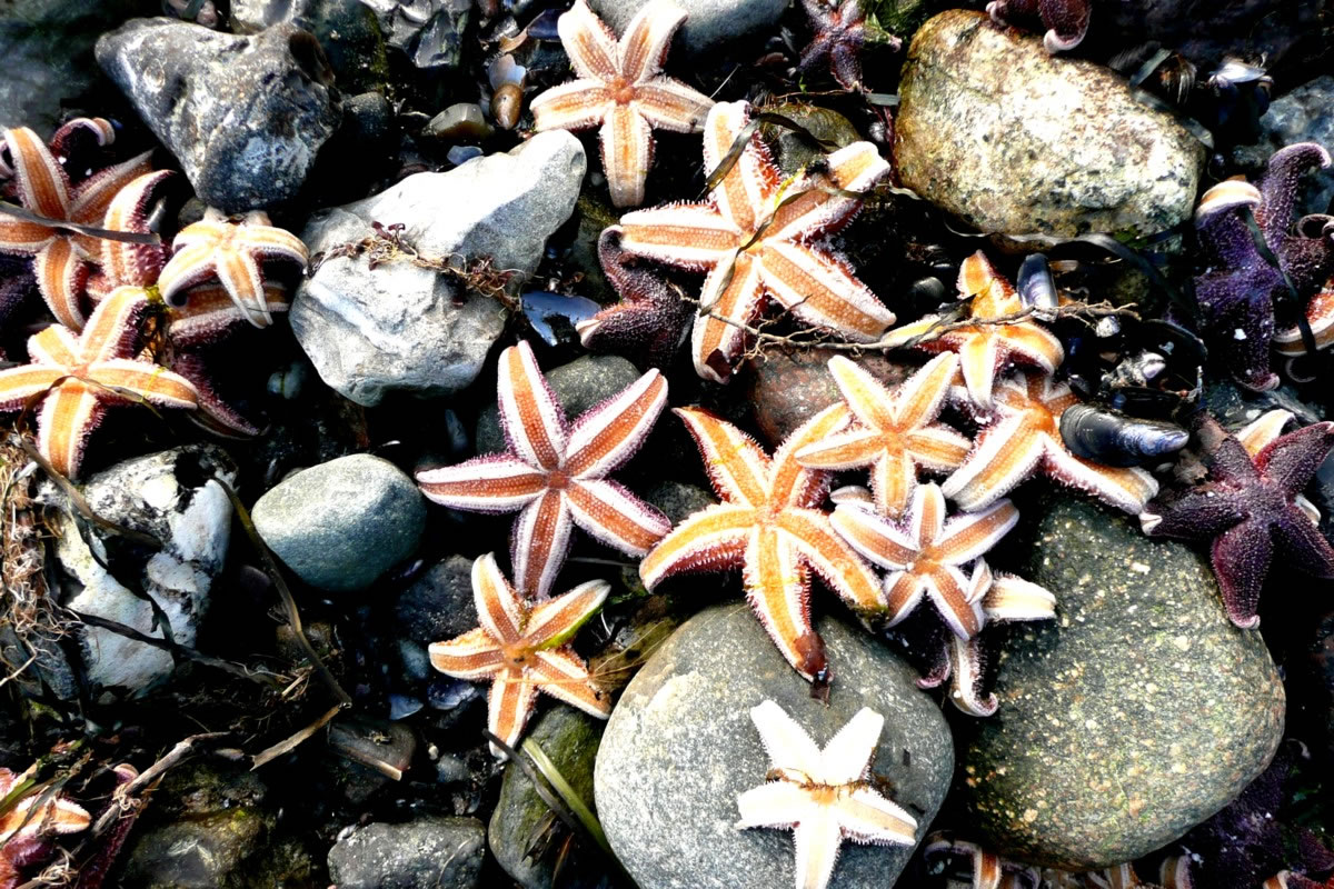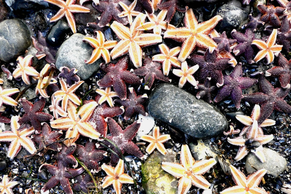 avers dat Up unsern Weg wöörn wi noch mehr Seesteerns wies. "Dat is ja meist so as Oostereier söken!" meen ik. Un denn kemen wi an en Steed, dor legen nich blots en or twee Seesteerns, ne, dor legen hunnerte neveneenanner un övernanner. Dat sehg meist ut, as wenn smucke Blööm mank de Steen wussen.