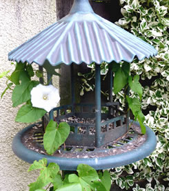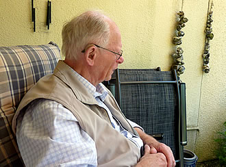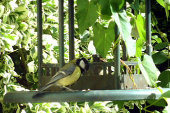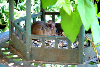 Musenstill seten wi nu up uns Stöhl un töven up den neegsten Besöök vun de Muus. Dat duur natüürlich en ganzen Stoot. Aver denn beweg sik dat Loov an de Lattenwand un de lütte Kopp mit de swatten Knoppogen vun den Spitzboven kemen to'n Vörschien. Denn hangel sik de Muus an de steile Terrassenwand na ünnen. Mit enen riesigen Satz sprung se över den Afgrund up dat Gitter vun de Vagelampel. De schaukel richtig hin un her. Denn leet de Muus sik dat goot smecken.