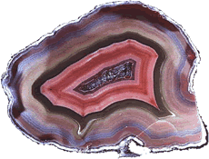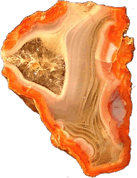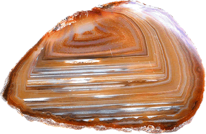 Utbilden vun'n Quarz mit Striepen. Vun dat Mineral her sehen geevt Achat un ok Onyx blots de Faarv an för Utbilden vun striepig Chalcedone. Achat hett vele Farven, Onyx hett blot swart/witt Lagen. |