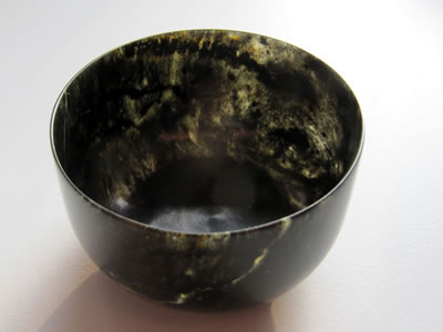 Oll Kollegin un Fründin Uta reist geern dörch de wiede Welt. Un af un to bringt se mi kostbor Dinge mit. So bün ik to wunnerboren Zimt kamen, de mit den, den wi hier köpen könnt, gor nich to verglieken is. Un so bün ik ok to twee ganz dünne Jade-Schalen naja, Jade-Schälchen kamen. Se sünd vun satt deepdüüster-gröön Farv und sünd wünnerschöön. Un se hebbt enen egenen utpolstert lütten Kasten, dat ehr jo nix passert. Ja un disse Jade-Schälchen hebbt mi anreegt, en beten över Jade natolesen. De Naam "Jade" sall vun "piedra de ijada" kamen, dat bedüüdt Lendensteen. As Jadeit un Nephrit bannig swor to ünnerscheiden sünd, warrt "Jade" as so'n Ort Oberbegriff för beide Steen bruukt.