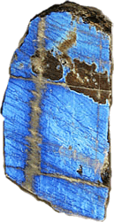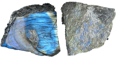 De Labradorit hett (graad as de Maandsteen, de aver mehr witt is) as Smucksteen meist enen azurblagen, wogend-perlmuttrigen Lichtschien in de dörchschienen melkig Grundmass. Disse Lichtschien is nich scharp afgrenzt. Haucht een den Steen an orrer maakt em natt, süht een düütlich gröön-blaag Placken so, as wenn Öl up en Waterpütt swömmt. Tostannkamen un Farven