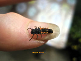 De Wahnungsbugesellschop hett för unsen Block Goornarbeiders, aver ik heff dat dörchsett, dat de mien Deel nich anfaten dörft! Dat heet, vörn vun unsen Ingang bit to'n neegsten un in'ne Eck achtern vun uns Huus maak ik dat! Bi mi gifft dat keen Püster, üm de Bläder wegtomaken, un ik maak uk de Heck un den Rasen. Dörbi acht ik dorop, dat mien lütten Hölpers, as de sööten Sünnenkinner, uk Glückskäfer nömt, nich toschannen kaamt. So'n lütten Dino harr ik mol op mien Finger.
