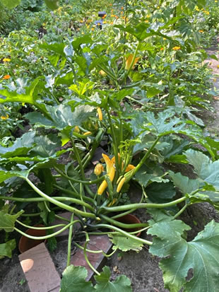 Nu wasst un blöht de Zucchiniplanten as dull. Wenn dat so wiedergeiht, mööt wi bald mal "Füllt Zucchiniblöten" eten anners kaamt wi dor gor nich gegen an. Ik hööp nu blots, dat wi nich ok noch över en Hagelschuer
