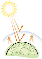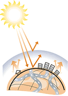 Uns Atmosphäär is uns Glashuus De Driefhuus-Effekt is keen Zivilischaschoons-Krankheit vun'e Eer! (Nich sowat as dat Ozoonlock.) Den Driefhuus-Effekt gifft't al lang. De Sünnschien kümmt an, en ganzen Cocktail ut Strahlung. Dat, wat bet na'n Grund dörkümmt, mutt dör de ganze Atmosphäär. Dorbi warrt al en Deel buten trüchstrahlt as an'n Spegel , un anneres warrt rutfiltert, t.B. veel vun de lege Röntgen- un Ultravigelett-Strahlung, de Huutkreevt maken kann. Wat denn noch ankümmt, is uns leve Sünnschien! De Eer warrt warm, wenn de Sünn op schient. Se wannelt dat in