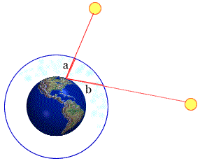 Dat blage Licht warrt so dull terstreut, dat dat gor nich mehr in een Strahl blifft -- dat driselt över de ganze Atmosphäre. Nachtigall, ik höör di trapsen? Ja! Dorüm süht de Heven blaag ut! Dorüm, bloots dorüm is de Eer de "blage Planet". Man dat geele un roode Licht warrt weniger terstreut; dat blifft as een Strahl tosaam. Dorüm köönt wi de Sünn as een geelen Ball sehn (hooch an'n Heben) oder as een roden Ball -- nerrn an'n Horizont. Denn wenn de Sünn deep steiht, denn mutt dat Licht dör ganz dicke Schichten vun Luft - un da warrt ok dat Geele terstreut, blifft bloots noch dat Roode na.