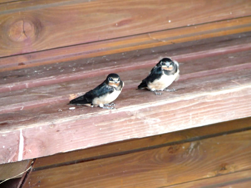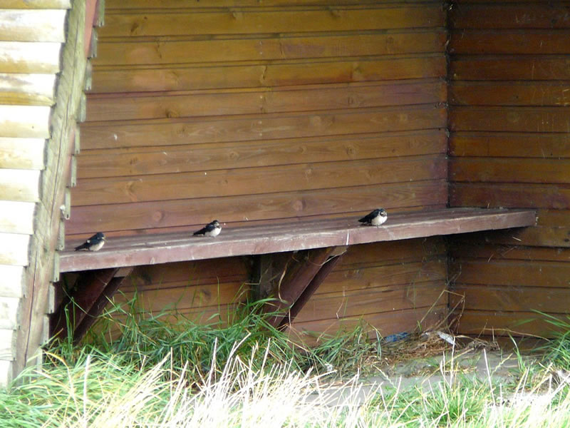 besett. Dree lütte Swulken seten up de Bank! Ehr Nest weer vun