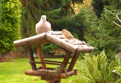un groten Vagels sik över dat Foder hermaakt. Oftins slaagt se