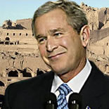Putin: Na und? Bush: Wat heet dat, Na und?!? Ik kann Wahlen nich utstahn!! Putin: Ruhig, ruhig! Torfkopp! Överleggt Se doch mal. Dat Problem sünd doch nich de Wahlen, dat Problem is de Demokratie! Bush: ???? Putin: Süüfz. Also. Schiiten gifft dat doch al lang