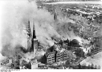 Lübeck brennt as ierste Stadt 1942. Bundsarchiv
