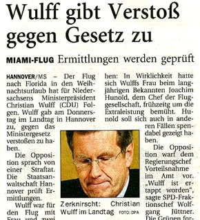 Sükkse Worden van een utwussen Familinvoader to hörn to kriigen moot doch jeden, de sükk ok blods noch een spierke Haart verwoahrt hett, dat blengerige Woater in de Oogen drieven. Ikk har in disse Momang up de anner Politikers dor in d Landdach in Hannower an leevsten mit een Bessensteel ingallert, vanwägen hör Druploshakken up een so fienfööliged Mannsbild. As mien Troanen denn wächdrööcht ween un ikk wäär wat kloarer kieken kunn, dor seech ikk tomoal een anner Bildje vöör mien binnerst Ooch updüüken. Dat is doch good, dat Minschke sükk an Belääven van Güstern besinnen kann. Ikk seech tomoal denn jungen upgeräächten Oppositionsföörer van de Christdemokroaten (wat is dat denn för een Heiopei, hevv ikk domoals bi mi dorcht dat he Wulff heet, wuß ikk domoals noch gannich) in de Bütt in de Sabbelbuud in d Hertochschlött in Hannower Lameng moaken. Dat gung üm de Hochtiedsreis van de Landsvoader (de domoals een van de anner Sied wee un Glogowski heeten hett), de hüm (un sien Olsch natürlich) dat Reiseünnernäämen TUI spendeert har. För sükkse Kunden trekken de woll jümmers extroa groode Spendeerbüksen an. Oaber dat is joa ok liekers. Denn Keerl dor in de Bütt wee up jederfall düchdich an schkellen un förder, dat de Glogowski as Landsvoader sienen Hoot näämen schull, wiel sükk sowat för een Amtsperson in disse Positschoon nich schikken dee un sowieso van wägen Anstand un Örnung un Ehre. De upgeräächte Avcoatenwulff (ikk wuß jümmers noch nich sien Noam) har denn ok glieks strenge Paragroafen för een neeäd Ministergesetz bi de Hand, dat sowat in Tokunft nich mehr geböören kunn. Tein Euro drüff een Geschenk höächstens weert weesen, wenn een Litt van Landsregeern wat anboaden wür. Dat is denn ok van d Parlament in een Gesetz timmert worden. Tja... un jüüst up dit Gesetz hett de neddersassisch Landsvoader mit sien Reis in de rieke Waarmte Floridas een grooten Hopen schäten. Wenn de Röäk van sien eegen Schiethopen hüm nu ut sien Amt drieven schull, denn word he noa een Karenztied un wenn de Schmoak van sien Undoon verfloagen is säker in d Bundsregeerung Justizminister; denn mit dat Gesetzen bräken keänt he sükk joa schiens good ut. |
