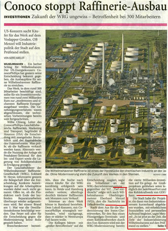 Nu wor de hilligen Fierdoagen güstern sünd, hevv ikk mi bevöör de Ballernacht kummt een bietji Tied noamen ton Verpuusten un hevv moal över d Diek keeken över de Diek, achter de mien Kinnertied hör Kinnertied tobrocht hett. Nu, wor ikk siet een poar Doach Propitär bün, hevv ikk dorcht ikk günn mi dat Besinnen an disse glükkerld Tied noch moal. An disse Tied, wor wi up d Penner in d Groo in de Schlööden Stiekelstakken fungen. An disse Tied, wor wi in dat hooge Gröön up de buntklöärigen Wischen Korben- un Kiebitzeier söächten. An disse Tied, wor wi an d Deep stünnnslang mit Wilgenstökk un Hüselband up Oal un Stint seeten. An disse Tied, wor wi dreemoal an d Dach de Schoapen an d Diek umtüddern mussen. An disse Tied, wor us Riek de Diek, de Strand, de Düün, dat Watt un dat gröönblausche Woater ween. Niks is dorvan blääven een wööste Wiede kreech ikk to sehn een wöste Wiede, de bold een grooten Blikkisten(Conteener)hoaben worden schall vöör de nu Milljarden in de Grund dönnert worden. Dat Weltnaturerbe Wattenmeer stuuv tägenan kann sükk över disse Noaber höögen. Wor hett man bi us denn ok all witte un schwaarte Engels up so een Nööchte binanner sitten? Ikk hevv mi denn doch verrafftich de Freeheit noahmen, mi to froagen, wat dat denn schall un ov wi as Minschen, as Gemeendschkupp, as Land so een Joahrduusendspillwaark as de Jade-Weser Port överhaupts bruken. Is dat nich eder so, dat een poar Minschkes sükk an dat Boowaark mall un döäsich verdeent? Mit een gülden Nöäs is dat woll gannich mehr to beliekteeken dat is all eder een gülden Mors, de see sükk dorbi hoalt. Mien Freeheit hett mi denn joa noch een spierke wiiderdreeven un hett mi de veelen Conteenerschkeepen wiest, de alleen vöör de düütsch Küsten van Polen bit an de hollandsch Grens foaken all moantenlang oahn Fracht an d Kett lirgen. Een büld sünd dorbi, de glieks noa Boo un Dööp to een Uplärger worden sünd. Dat is doch een bääten so, as wenn wi neää Minschen noadem see geborn un döfft worden sünd glieks in d Ollenhuus ovschuuven deen. As ikk dat in mien Köäsel all son bietji trechtsett har, dor hett mi dat Minschendoon reschkoapen verfäärt. |