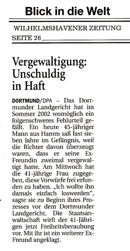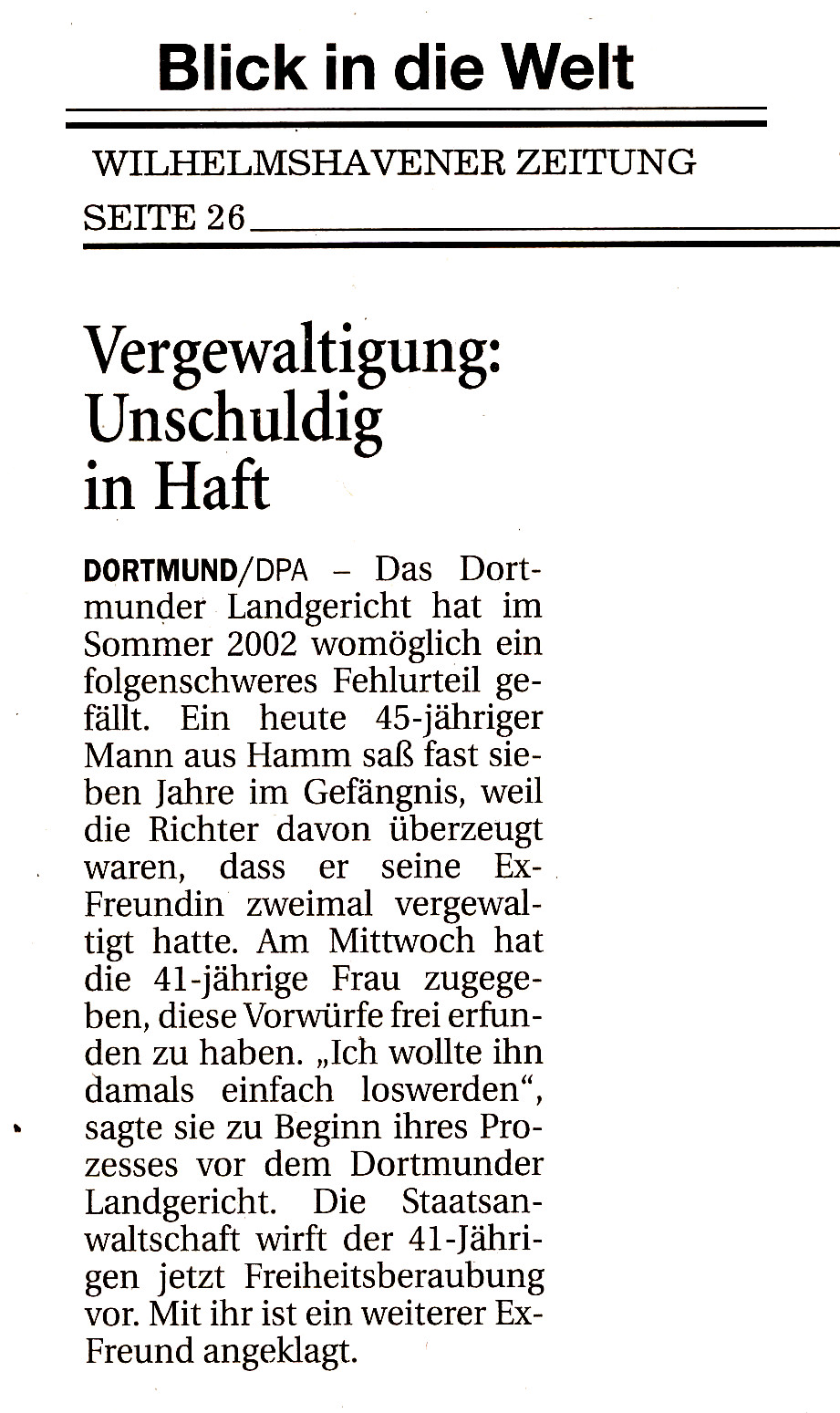 Wenn ikk een Vermelden so as dat hier ut us Bladdje to sehn is dör de Noarichtenwelt steustern seech, denn kriech ikk elkermoal Krüllern in d Denken. In de Kopputsoach heet dat heel düdelk, dat een Minschke, verurdeelt wägen een Vergewaltigung, unschüllich in d Koahn sitten deit. Dat is een kloared Benöömen. In dat lütker Schrieveree dor ünner heet dat denn wäär van womöglich ein folgenschweres Fehlurteil gefällt. Een poar Satzen wiider kummt denn vandach, dat aal dat Särgen, wat to disse Verurdeelung föört hett, van vörn bit achtern Löägens west is. Dat Froominsch, wat sükk domoals as Opfer präsenteert har, hett togeeven, dat see dat Mannsbild mit disse Anschülligung to de Tied blossich loswarden wull. Un wu geit dat bäter mit, as heel luut to bölken, dat man (Froominsch) van de Keerl, de een lastich word, vergewaltigt worden is? Dat nu oaber nümms wat in de verkeerde Hals kricht wenn een dee anner Gewalt andeit, ov sükk mit Gewalt wat hoalt, wat de anner hüm in de Momang nicht gääven will ov kann, denn hört dat bestroaft un ok mehr bestroaft, as dat vandoagen foaken so goaelk is. Dor schull man sogoar mennich Deel eenfach ovschnieden. Dor much ikk keen Twiefel an upkoamen loaten. Mi geit dat hier üm de Oart un Wies, wu de Schrievers un Schnakkers hör Berichten över dit un dat, eenfach över dat Geböören in de Welt in Worden un Satzen inpakken. Jeden will wat dorto särgen un nümms troot sükk liekut to schnakken un to schrieven. Dor warden denn Minschkes ok wenneer see hör Undoon liekherut tögääven hefft, ov sogoar wenn man hör bi hör leeged Doon androapen hett jümmers as vermutliche oder vermeintliche Täter beteekend. Wu leech is dat eelich? Kuroasch lett anners un Zivilkuroasch noch ganz anners. Also, ji Schriever un Schnakkers in d Landje troot jo endlich wäär Peerd un Rieder to nöömen ov anners sächt, foat de Düwel bi Hörns un Steert, wenn he mit sien Peerfoot an jo vöörbitrappelt. |