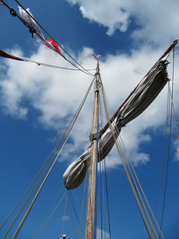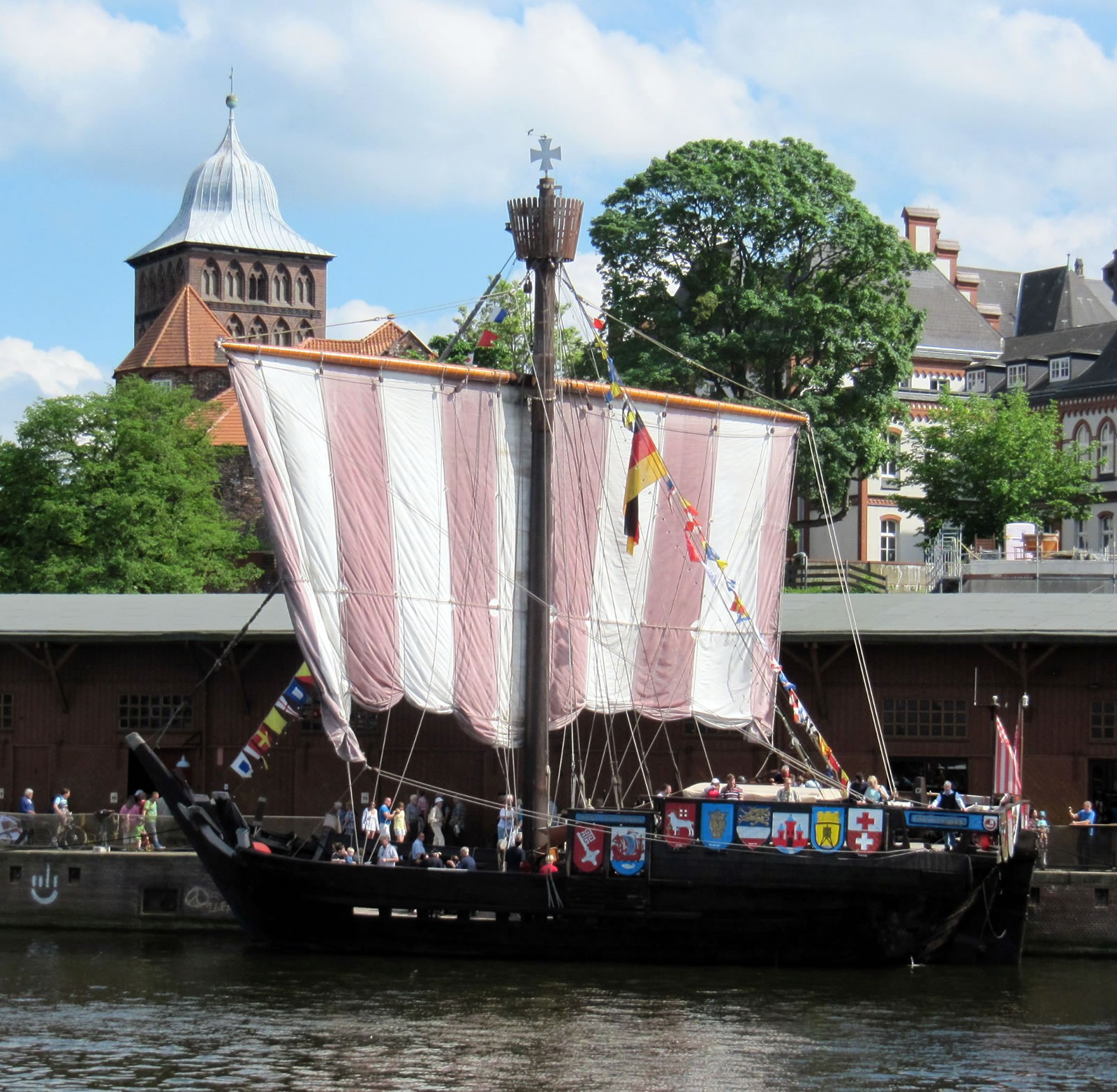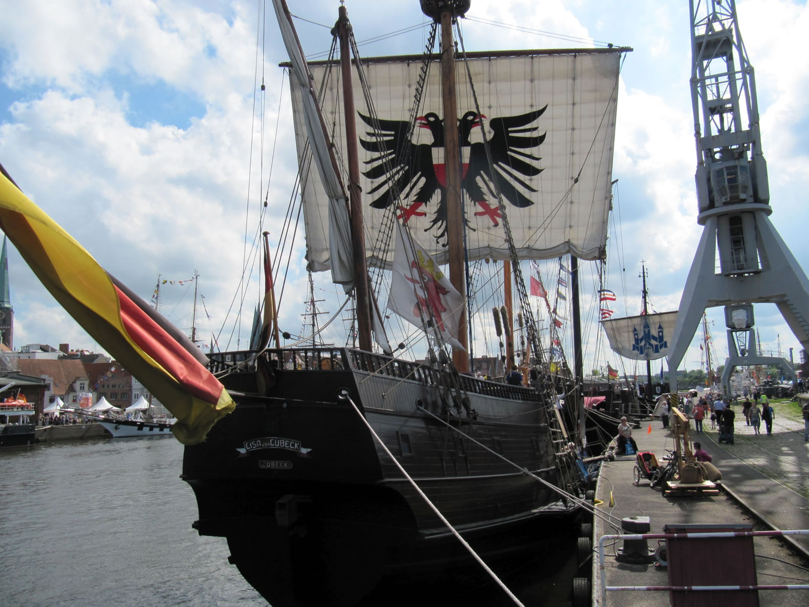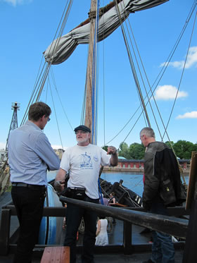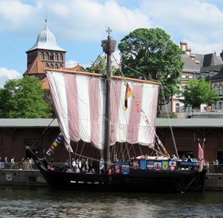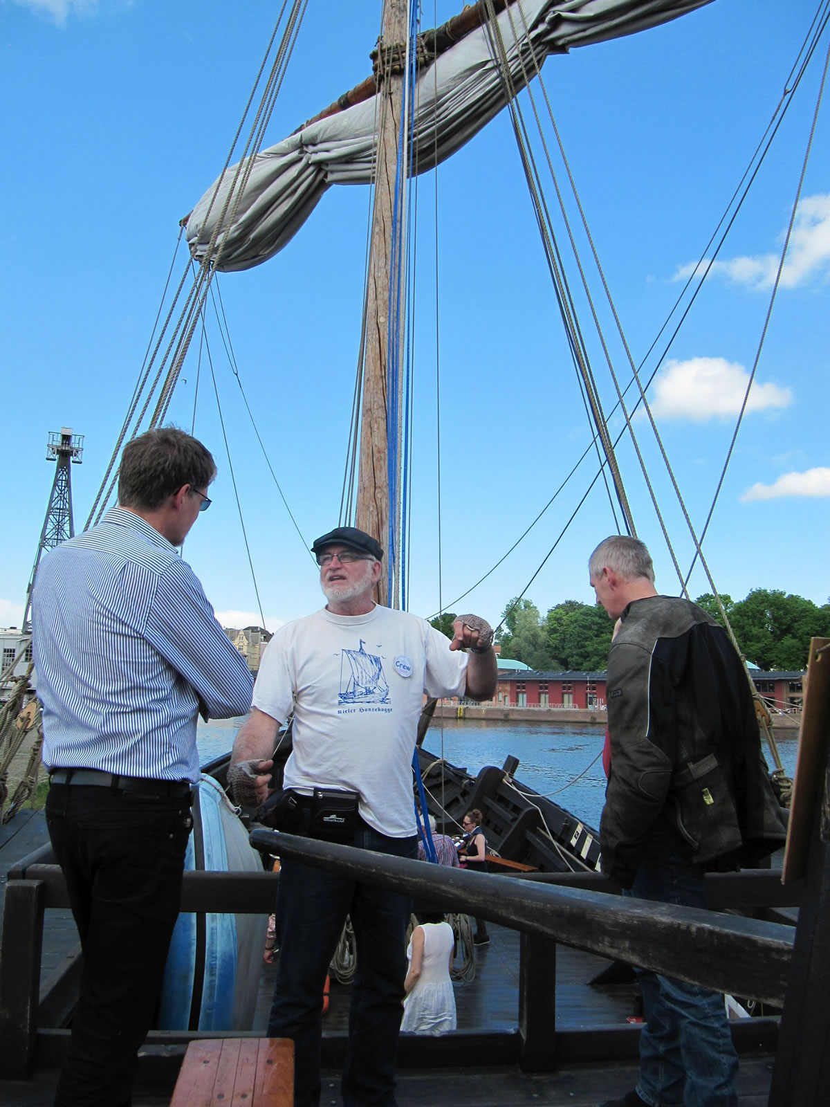 Mien leef Mann hett hier un dor beten wat up Plattdüütsch vörleest, vertellt. Uns Imke hett hier un dor Leder sungen, ok bi den groot Eröffnungsavend vör't Holstendoor hett ehr Chor mit sungen. Man denn keem en E-Mail vun Fründ Peter. He höört mit to Crew up de "Kieler Kogge" un se liggt in'n Lübecker Hafen un he laadt uns in, an Bord to kamen. Dat hebbt wi daan un dat weer würklich en Beleven vun besünner Ort. Bi strahlen Weder sünd wi an Bord rümkrapen, hebbt uns allens ankeken un hebbt staunt, dat uns Vöröllern sik truut hebbt, mit so'n lütt Schipp wiet över't Water to schippern.