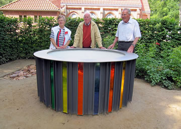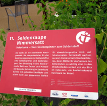 Rosenduft ümweiht, ik much mi gor nich trennen. Un denn heff ik noch nie se vele vun uns gode olle Buntnessel up'n Hupen sehen, as hier. Se lüchen in deep satt düüsterroot, man ok in dat bekannte root-gröön, ut vele Beete. Wi hebbt veel ünnerschiedlich Schrebergoorns ankeken un ok Loki Schmidt ehre lütte "Wildnis". Wi kemen an en Stück Heide vörbi. De Erika füng graad an mit't Blöhen un ok en lialütt Hünengrav hebbt wi dor funnen, so lütt, dat kunn blots för Poppen west sien. Beten wat erschöpft hebbt wi in dat olle "Wasserwerk" Middag eten. Matjes mit Gröne Bohnen. Weer goot. Un en Glas Wien hett denn ok unse Levensgeister wedder in'n Gang sett. Bet Klock söven an'n Avend sünd wi vergnöögt dörch de Utstellung rullt. Mien leef Mann hett in Ruh al de Hüüs, de dor nieg buut sünd, ankeken un kommenteert. Un denn hebbt wi uns ok noch en Rundfohrt mit de Tog, de up een Schien över dat Utstellungsgelände rullt, gönnt. De Schiene is up Stelzen verleggt, so dat wi goot kieken kunnen. Dorto vertell de NDR över allens, wat dat rundüm to kieken geev. Dat Motto vun diese Goornschau is "In 80 Goorns üm de Welt", na de Idee "In 80 Daag üm de Welt" vun Jules Verne. Ik tell mal up, wat ik allens sehen heff, an wat ik mi erinner: