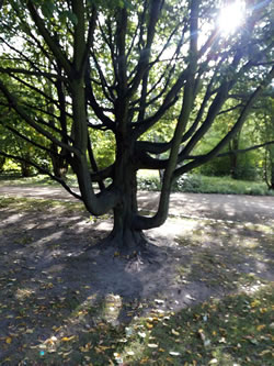 Mitten mang dei Blaumenanlagen gifft dat den "Martin-Luther-Weg", dei sick dörch dei Hall hentrecken deit. Miteis seih ick Luther: "Kiek eis, dor steiht Martin Luther. Man, sien Gesicht is würklich sihr utdrucksvull." Dei Skulptur is nich grot, oewer bannig gaut gelungen. Sei passt in dei Blaumenlandschaft. Up dissen Weg seih ick sorgor 'ne historische Bibel. So ward ok hier an den groten Reformator dacht.