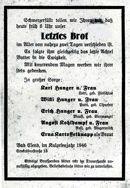 afmaddelt bün, denn laat uns man neegst unsen Hungerdaag begahn.