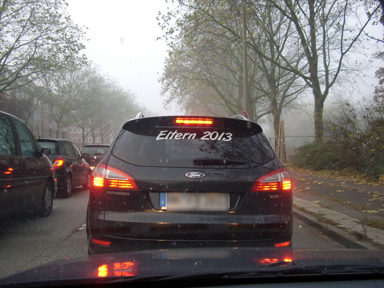 op. Oftins, wenn sien lütte dukert Gestalt in'n Rückspeegel