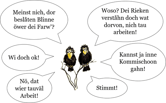 Un man denkt an all, an Frömde un an dei, dei allein 'n lütten Wörm uptrecken möten, wägen 'n Krankheit nich arbeiden dörpen orrer mit Schrift un Språk noch nich so ümgåhn, dat's 'n Formular läsen, verståhn, utfüllen un anne richtige Stell afgäben orrer inreiken knen. Un nich all sünd so kunnig, dat's weiten, up wecker Amt orrer in wecker Inrichtung dei minnerbemittelte Minsch 'n Andrach up Wohngeld un Hülp taun Läbensünnerholt, up 'n Tauschuss ut't Billungspaket för Schaulsåken, för Kinnergeld, Kinnertauschlach, Öllerngeld, Muddergeld, den Ünnerholtsvörschuss un dat "Teilhabe"-Geld, up Geld för 'n Schullenberadung un 'n Inkopsschien för dei Tafel, för 'n Mudder- un Kindkur un anner Hülp stellen möt.